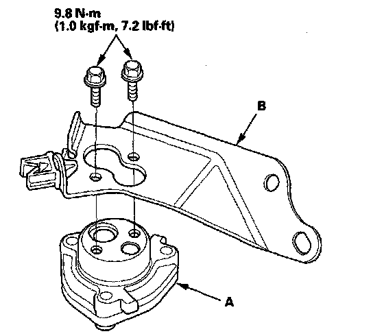 9. Install the clutch damper (A) to the clutch damper bracket (B).