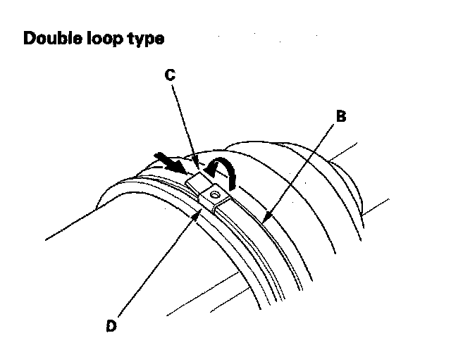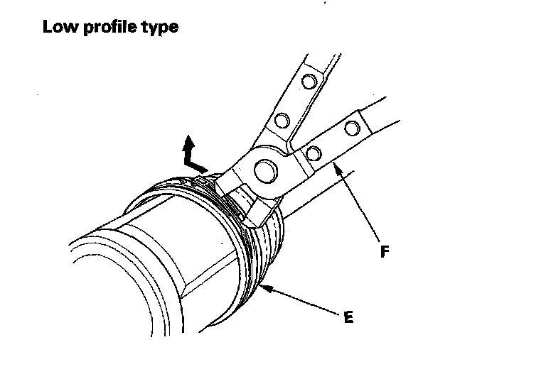 ^ If the boot band is a low profile type (E), pinch the boot band using the commercially available boot band pliers (F).