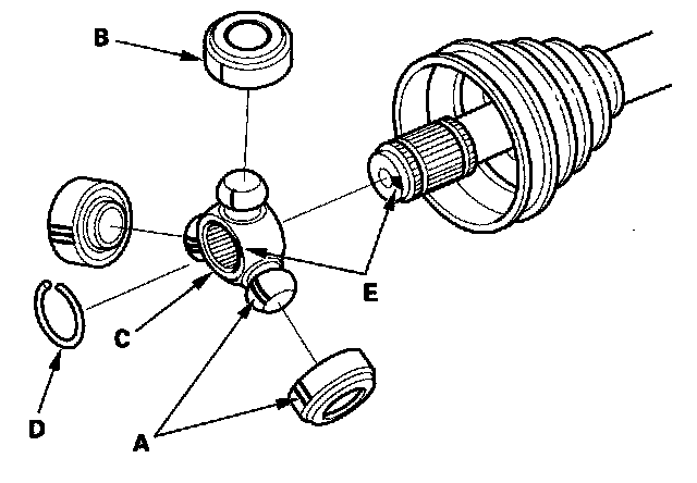 6. Mark the spider and driveshaft (E) to identify the position of the spider on the shaft.