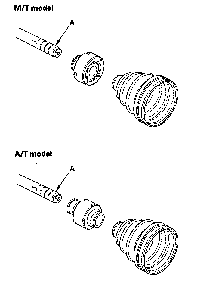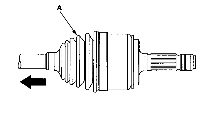 2. Slide the outboard boot (A) partially to the inboard joint side. Be careful not to damage the boot.