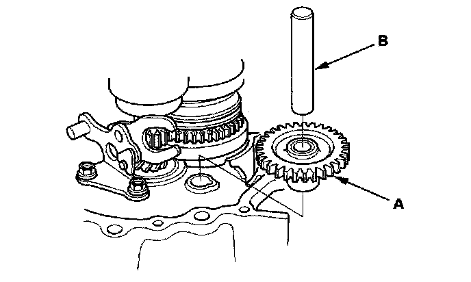 8. Remove the reverse idler gear (A) and reverse gear shaft (B).