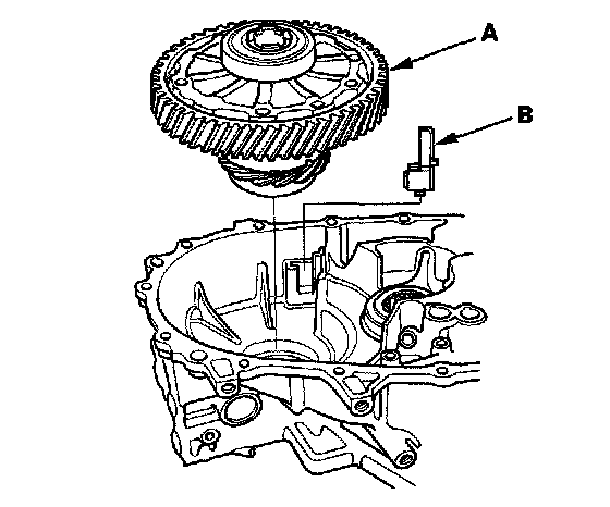 14. Remove the differential assembly (A), and magnet (B).