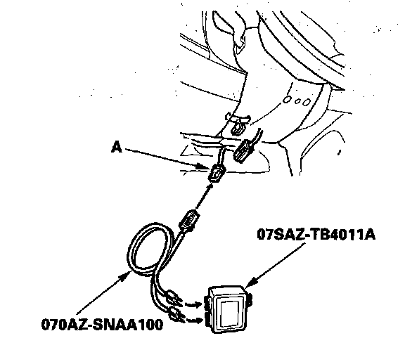 11. Connect the SRS inflator simulator (2 ohms connectors) and the SRS simulator lead to the SRS main harness.