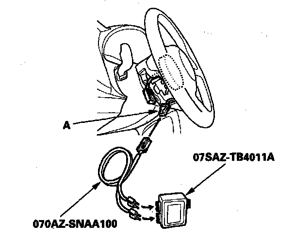 4. Disconnect the driver's airbag 4P connector (A) from the cable reel.