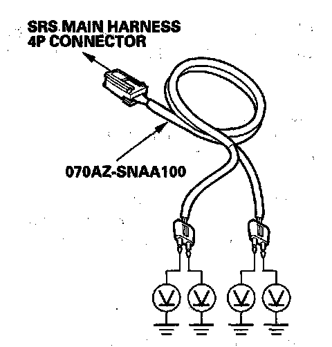 11. Connect the SRS inflator simulator (2 ohms connectors) and the SRS simulator lead to the SRS main harness.