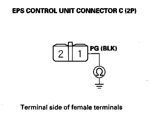 2. Check for continuity between EPS control unit connector C (2P) terminal No. 1 and body ground.