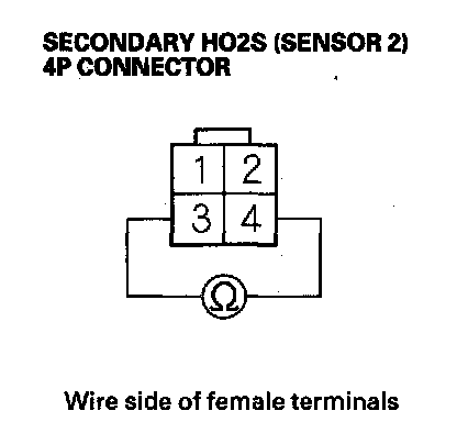 8. At the secondary HO2S (Sensor 2) side, measure resistance between secondary HO2S (Sensor 2) 4P connector terminals No. 3 and No. 4.