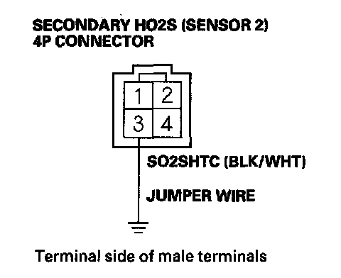20. Connect secondary HO2S (Sensor 2) 4P connector terminal No. 3 to body ground with a jumper wire.