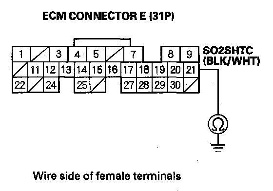 21. Check for continuity between ECM connector terminal E21 and body ground.