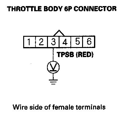 8. Measure voltage between throttle body 6P connector terminal No. 3 and body ground.