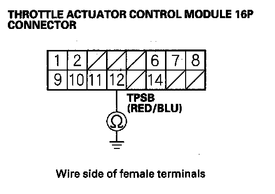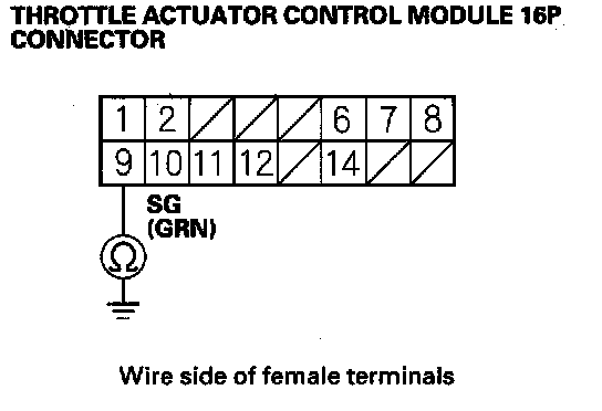 12. Check for continuity between throttle actuator control module 16P connector terminal No. 12 and body ground.