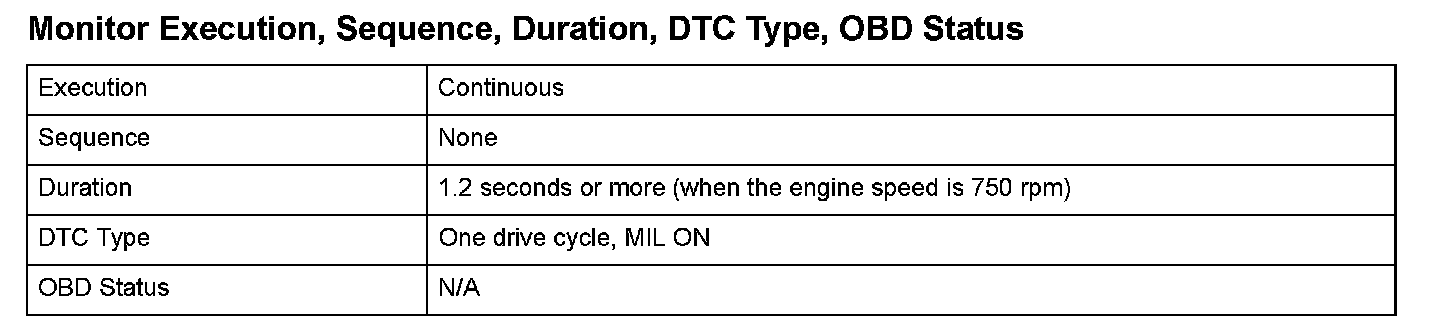 Monitor Execution, Sequence, Duration, DTC Type, OBD Status