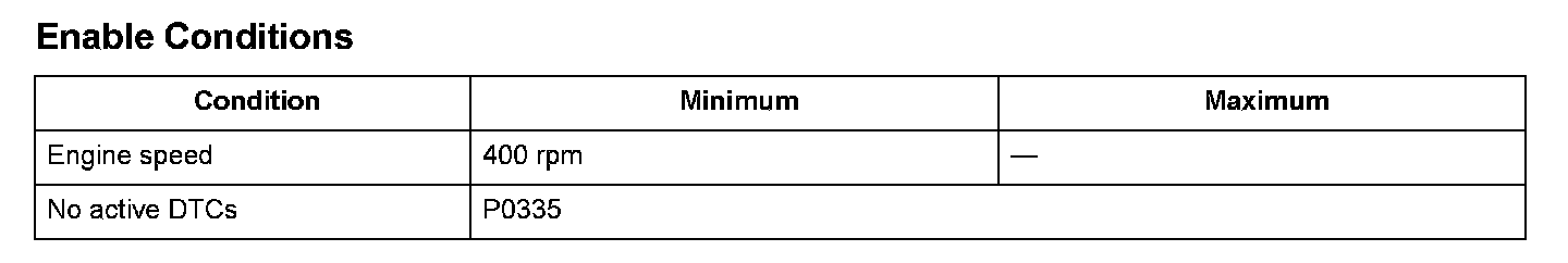 If an abnormal amount of pulsing signals from the CKP sensor are detected, a malfunction is detected and a DTC is stored.
