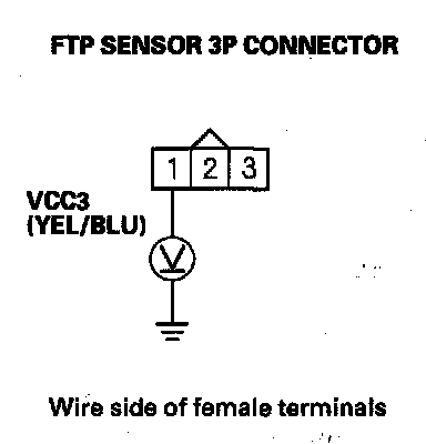 14. Measure voltage between FTP sensor 3P connector terminal No. 1 and body ground.
