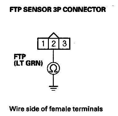 19. Check for continuity between FTP sensor 3P connector terminal No. 2 and body ground.