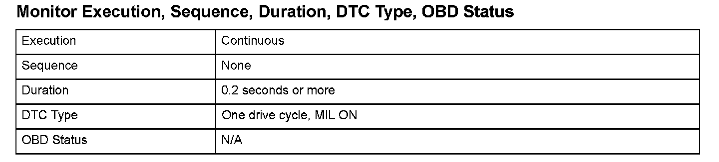 Monitor Execution, Sequence, Duration, DTC Type, OBD Status