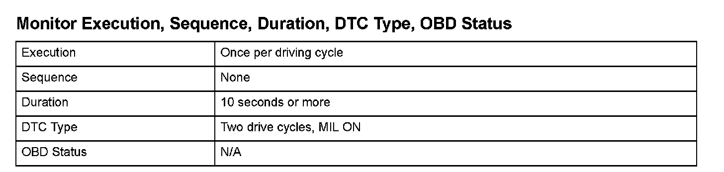 Monitor Execution, Sequence, Duration, DTC Type, OBD Status