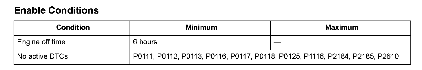 - When the temperature (IAT minus ECT2) is not 46 °F (26 °C) or less.