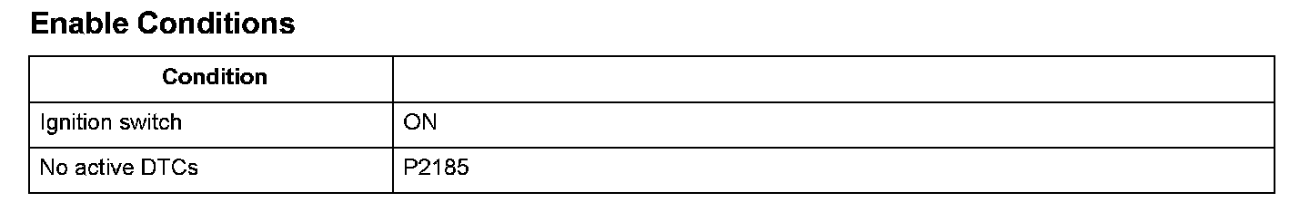If the ECT sensor 2 output voltage is less than a set value when the engine coolant temperature is high, the ECM detects a malfunction and a DTC is stored.
