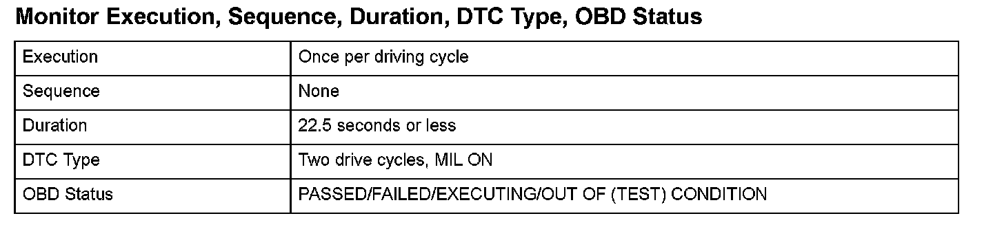 Monitor Execution, Sequence, Duration, DTC Type, OBD Status