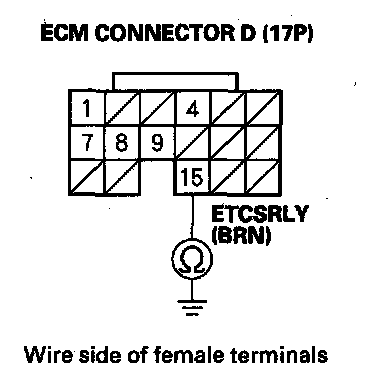 9. Check for continuity between ECM connector terminal D15 and body ground.