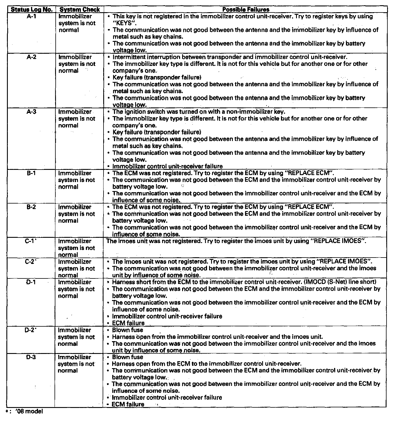 NOTE: The HDS can be used to check the state of the immobilizer key registration and the IMOCD (S-Net) line by doing a system check.