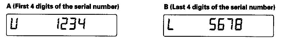 3. The audio unit displays a U and a 4 digit number (A) (example U1234). These are the first 4 digits of the serial number. The display then changes to a L and a 4 digit number (B) (example L5678). These are the last 4 digits of the serial number.