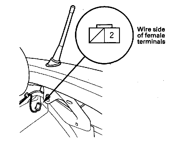 10. Measure the voltage between AM/FM antenna 2P connector terminal No. 2 and body ground.