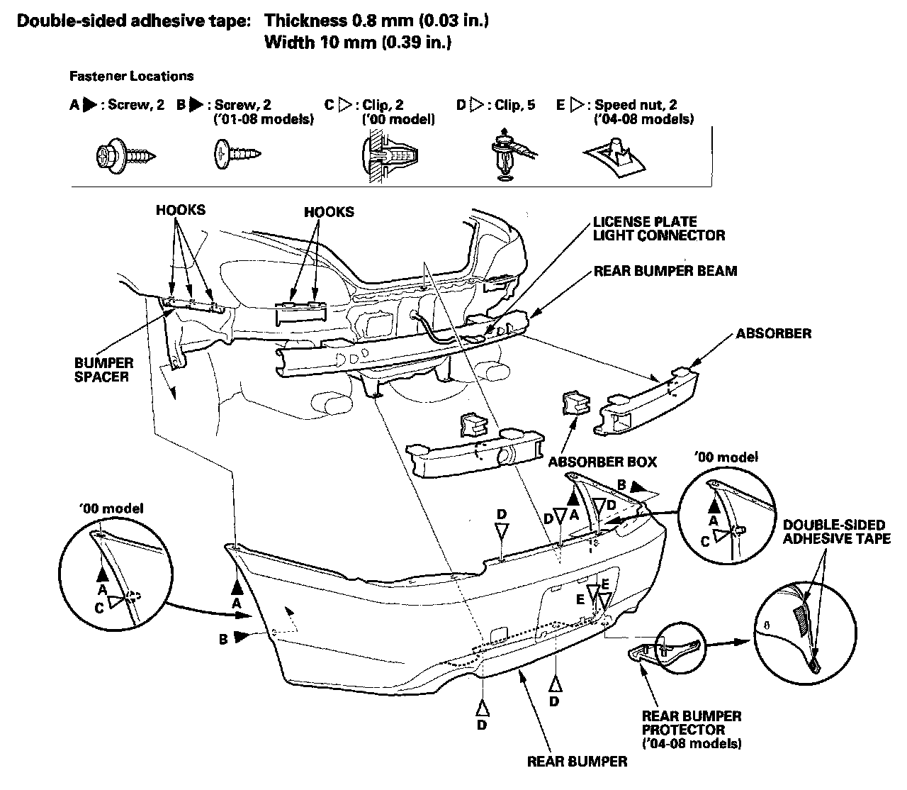 - For '04-08 models: If the rear bumper protector is reinstalled, clean it and the bumper with a sponge dampened in isopropyl alcohol. Apply primer to the protector surface, and then apply new double-sided tape.