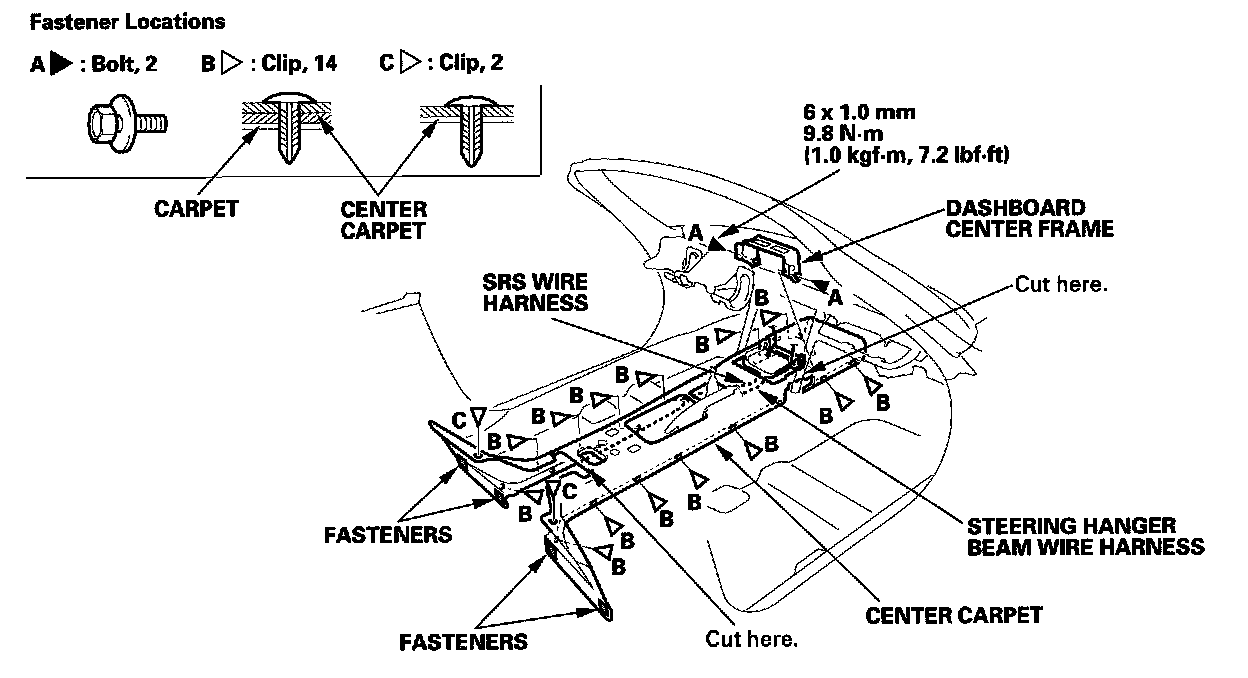 Center Carpet ReplacementSRS components are located in this area. Review the SRS component locations for the appropriate model.