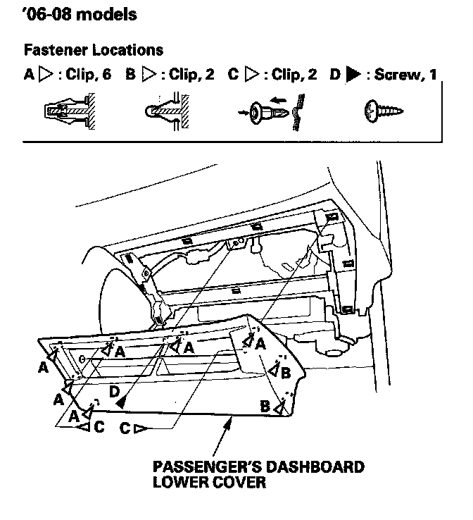 Passenger's Dashboard Lower Cover Removal/InstallationSpecial Tools Required
