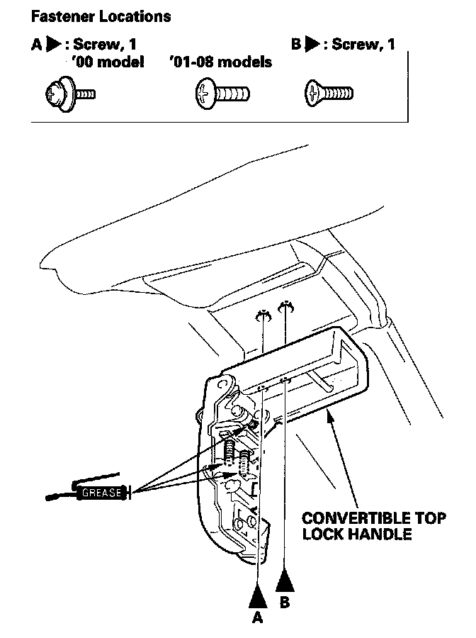 Convertible Top Lock Handle ReplacementNOTE: Take care not to scratch the top frame.