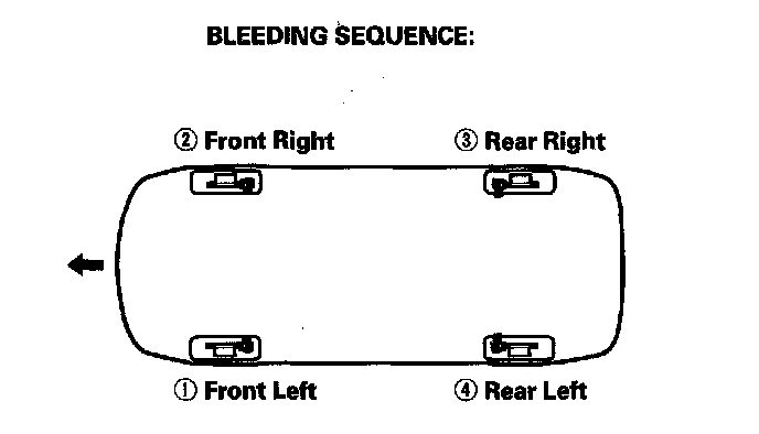 5. Repeat the procedure for each caliper until no air bubbles are in the fluid. Bleed the calipers in the sequence shown: