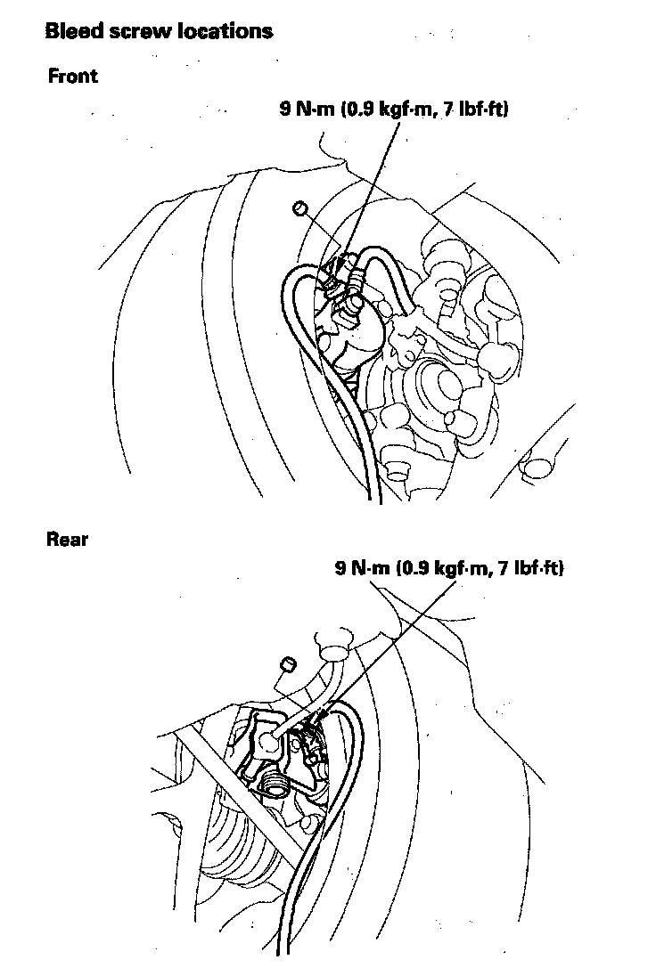4. Starting at the left-front, loosen the brake bleed screw to allow air to escape from the system. Then tighten the bleed screw securely.