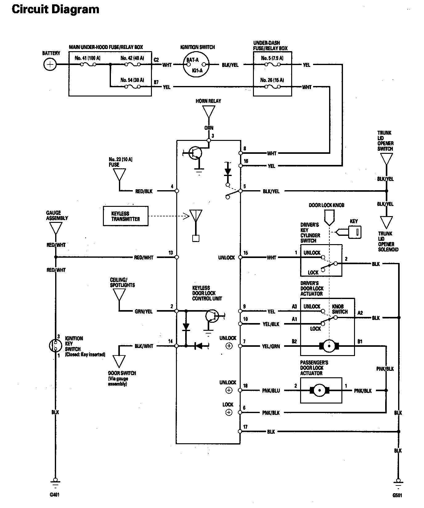 Keyless/Power Door Lock System Circuit Diagram