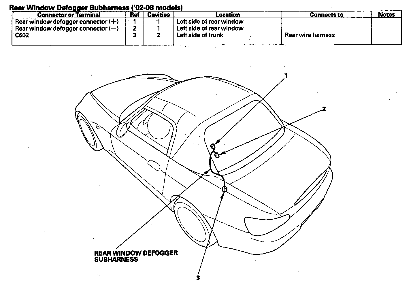 Rear Window Defogger Subharness:
