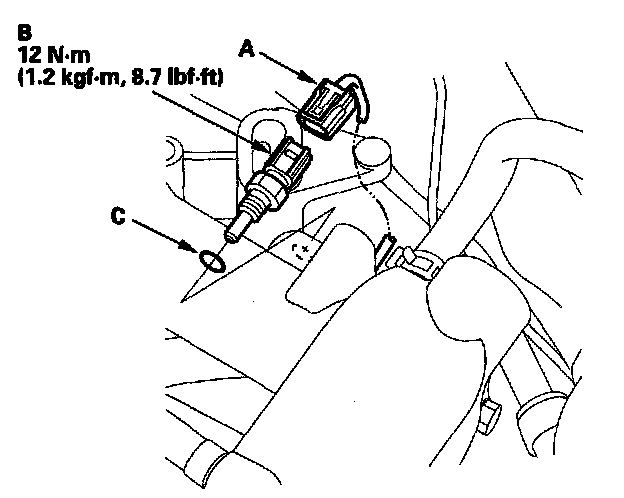 4. Install the parts in the reverse order of removal with a new O-ring (C).