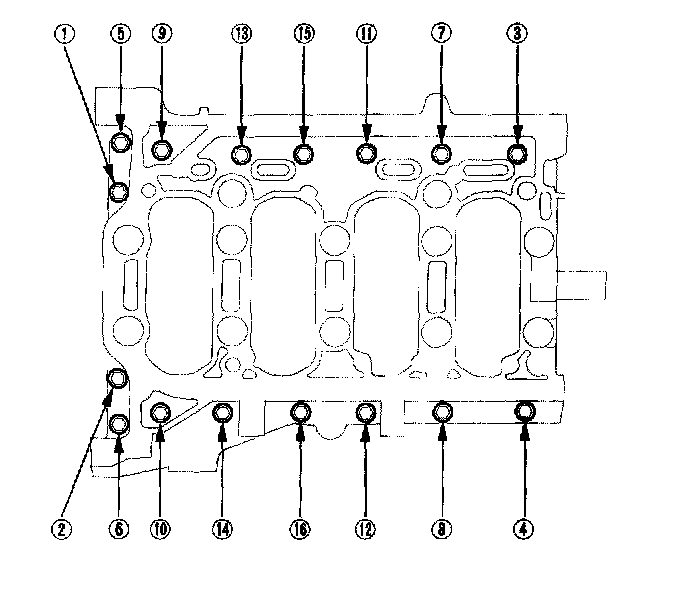 5. Remove the bearing cap bolts. To prevent warpage, unscrew the bolts in sequence 1/3 turn at a time; repeat the sequence until all bolts are loosened.