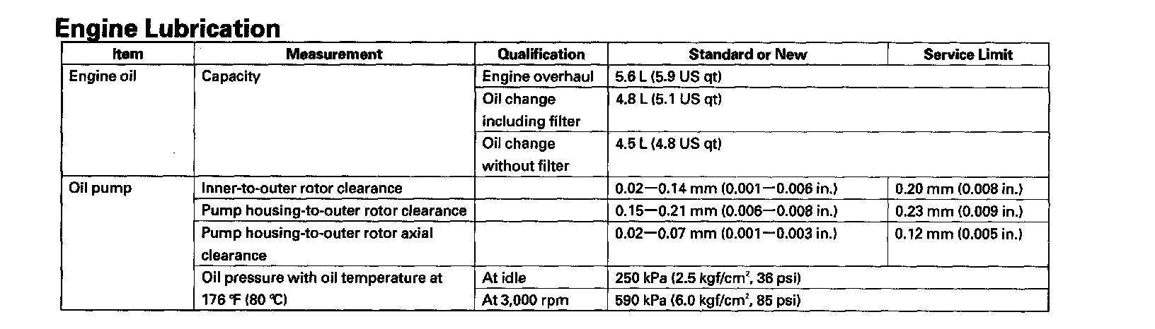 Engine Lubrication: Specifications
