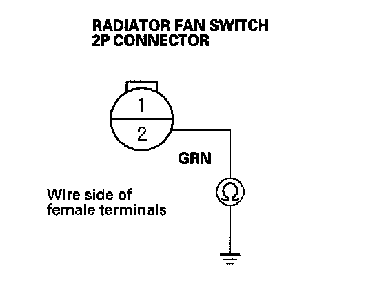 4. Check for continuity between the radiator fan switch 2P connector terminal No. 2 and body ground.