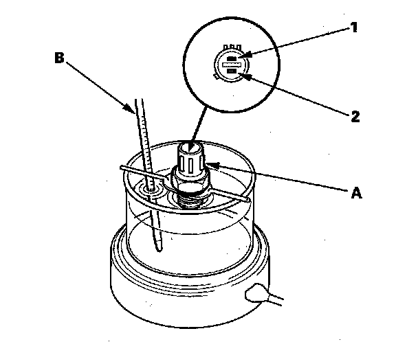 2. Suspend the radiator fan switch (A) in a container of water as shown.
