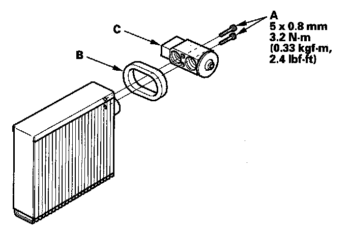 4. Remove the outer seal (B) and expansion valve (C).