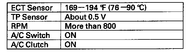 2. Using the HDS, confirm the following values in the PGM-FI Data List at idle.
