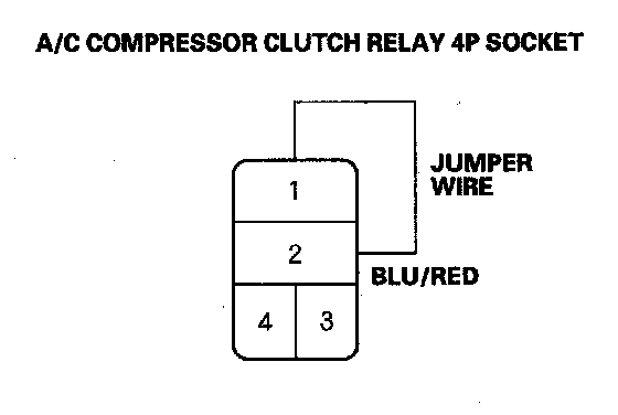 5. Connect the No. 1 and No. 2 terminals of the A/C compressor clutch relay 4P socket with a jumper wire.