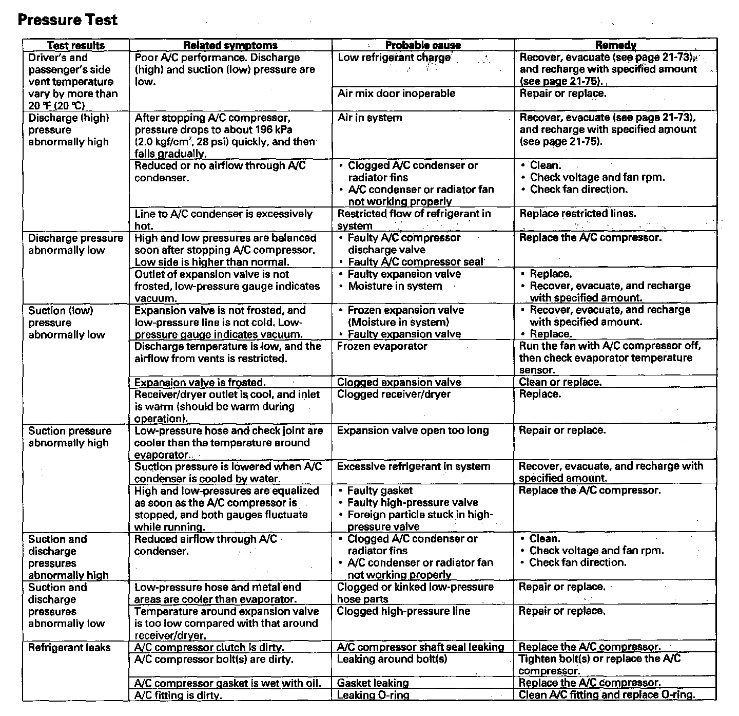 R-134a service equipment or vehicle air conditioning systems should not be pressure tested or leak tested with compressed air.