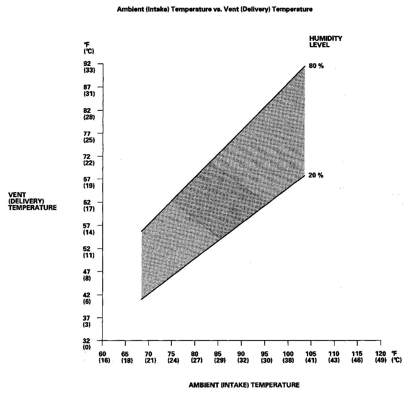 - Draw a horizontal line from the vent (delivery) temperature mark until it intersects the vertical line.