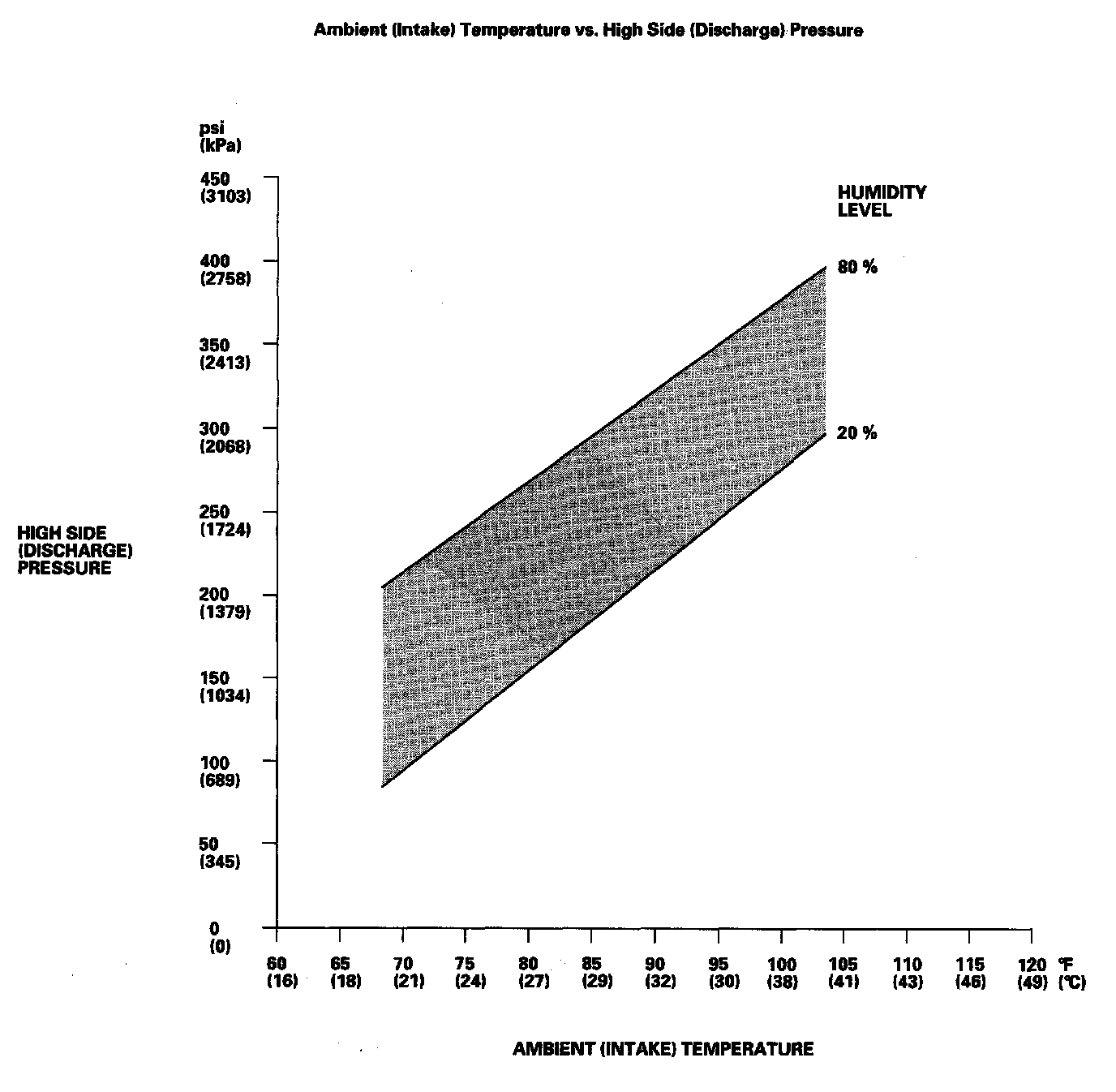 8. To complete the high side (discharge pressure)/ambient air (intake) temperature chart:
