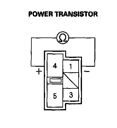 2. Measure the resistance between the No. 1 and No. 4 terminals of the power transistor. It should be about 1.4 - 1.5 kohms.