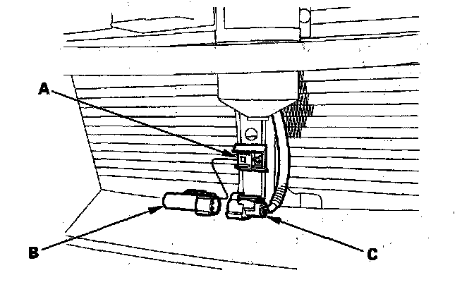 1. Lift the tab (A) to release the lock, then remove the outside air temperature sensor (B) from the sensor clip. Disconnect the 2P connector (C) from the outside air temperature sensor.