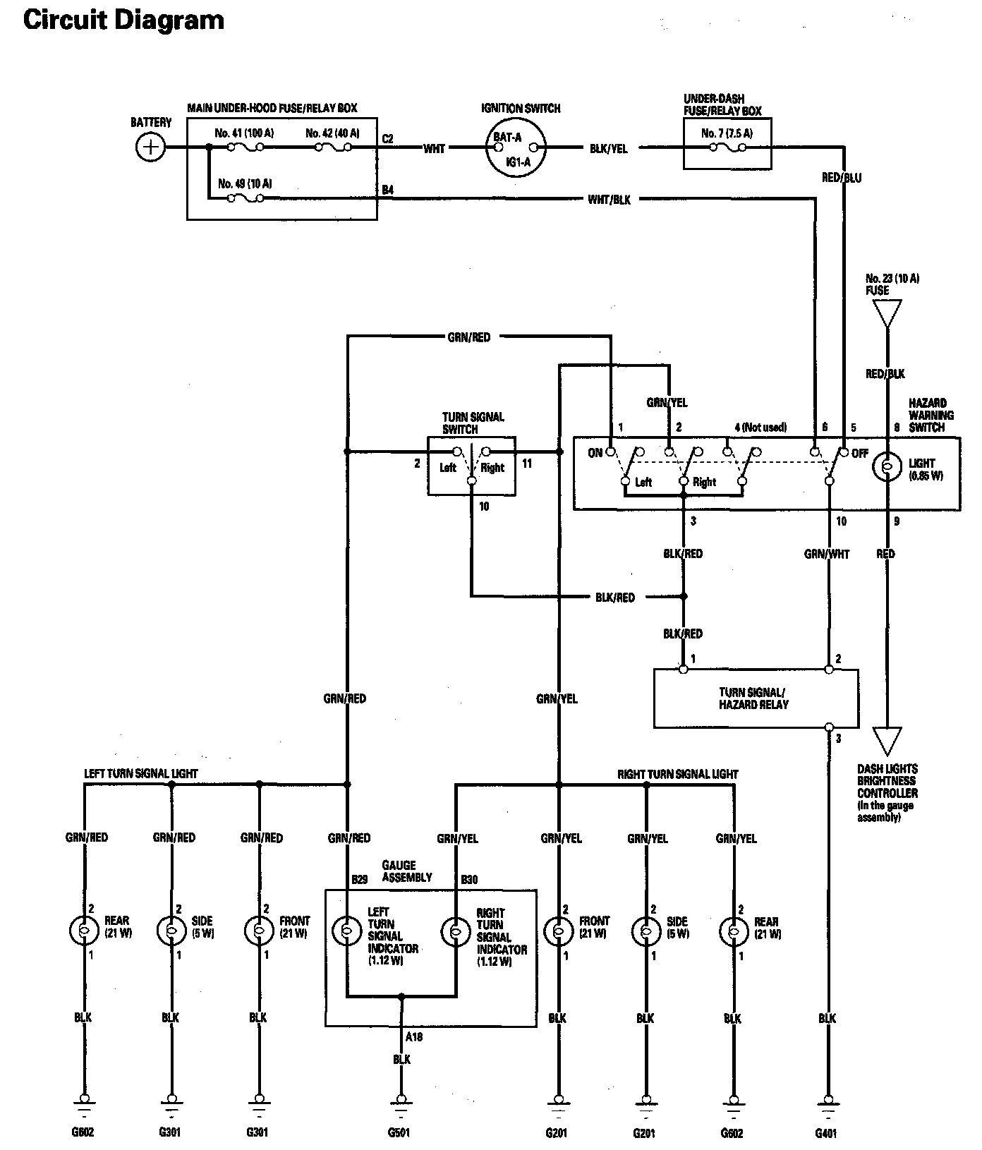 Turn Signal/Hazard Warning Lights Circuit Diagram: